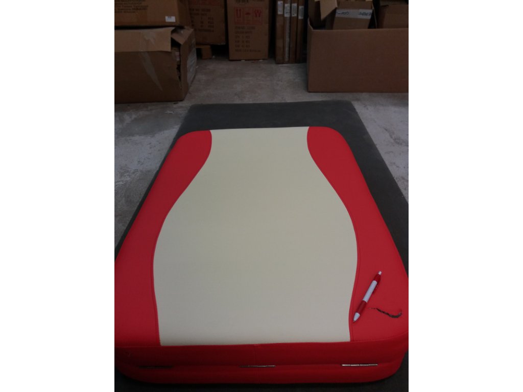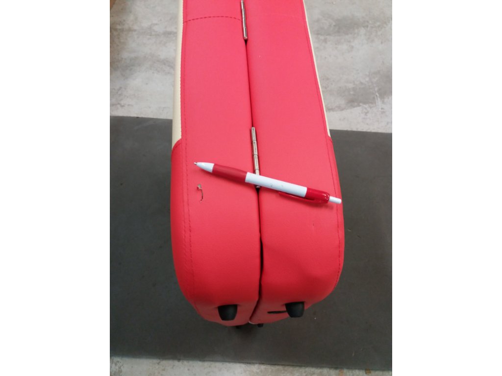 Skladací masážny stôl TANDEM Profi A2D Duo v krémovo-červenej farbe má tržné rany na čalúnení. Poškodenie vidieť v galérii na priložených detailných fotografiách.