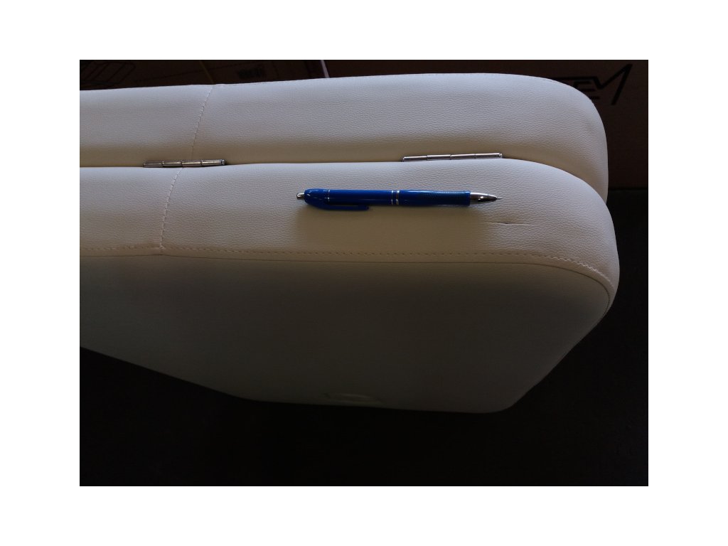 Skladací masážny stôl TANDEM Profi A2D v krémovej farbe má reznú ranu na čalúnení. Poškodenie vidieť v galérii na priložených detailných fotografiách.