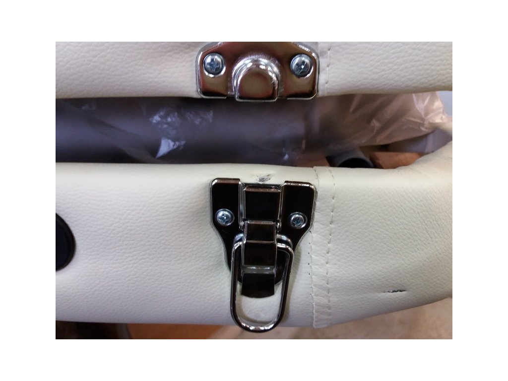 Skladací masážny stôl TANDEM Profi A3D v krémovej farbe má drobné poranenia na čalúnení. Poškodenie vidieť v galérii na priložených detailných fotografiách.