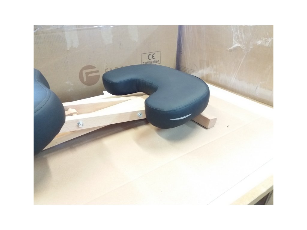 Kľakačka Tandem CLA v čiernej farbe má reznú ranu na čalúnení opierky nôh. Poškodenie vidieť v galérii na priložených detailných fotografiách.