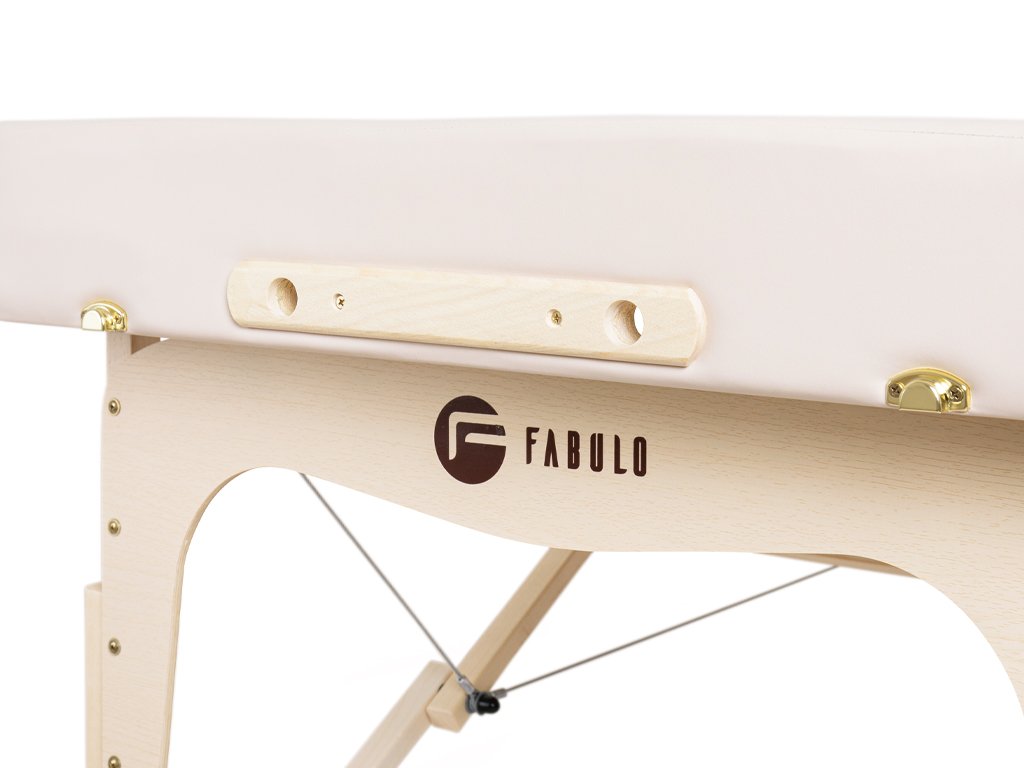 Skladací masážny stôl Fabulo Ayurveda je vyrobený z kvalitného tvrdého bukového dreva prvej triedy s viacvrstvovým lakovaním pre dlhšiu trvácnosť. Maximálnu stabilitu lehátka zabezpečujú nadštandardne hrubé priečne panely, čím sa predchádza knísaniu stola počas masáže. Fabulo Ayurveda s oválnym reiki panelom ponúka voľný priestor medzi nohami a umožňuje pohodlné sedenie maséra. Nadštandardnú kvalitu masážneho stola zabezpečujú aj špeciálne frézované nohy stola pre zvýšenie stability, pevné protišmykové gumené ochrany nôh a ergonomické pogumované skrutky.
