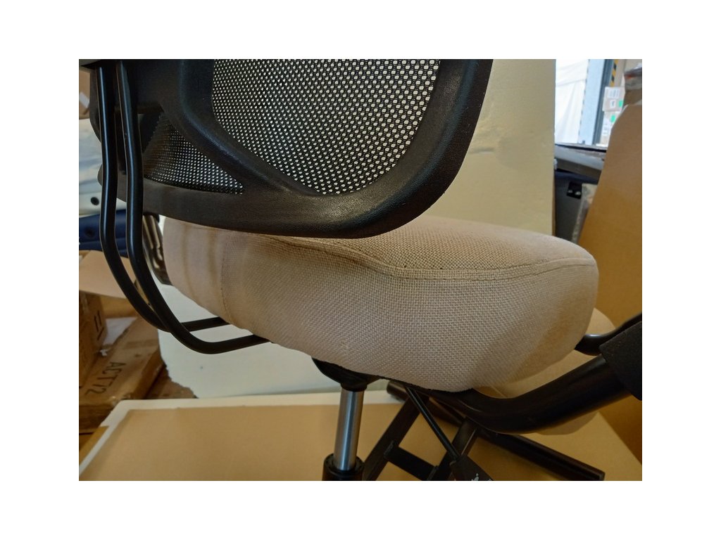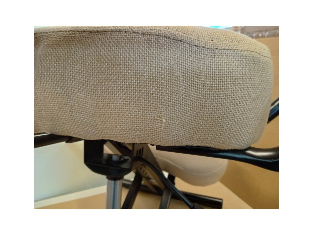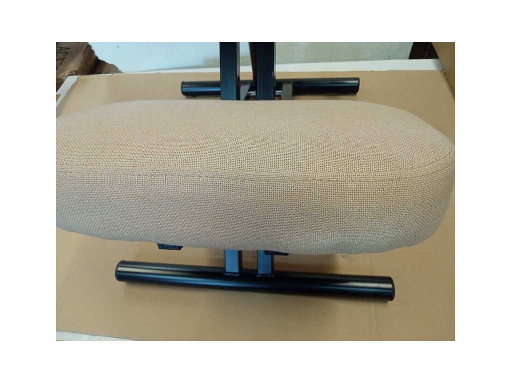 Ergonomická kľakačka RUFUS v béžovej farbe bola zložená a krátkodobo využívaná ako predvádzací model. Na konštrukcii sú drobné odreniny a na tkanine sedadla sú známky používania. Poškodenie vidieť v galérii na priložených detailných fotografiách.