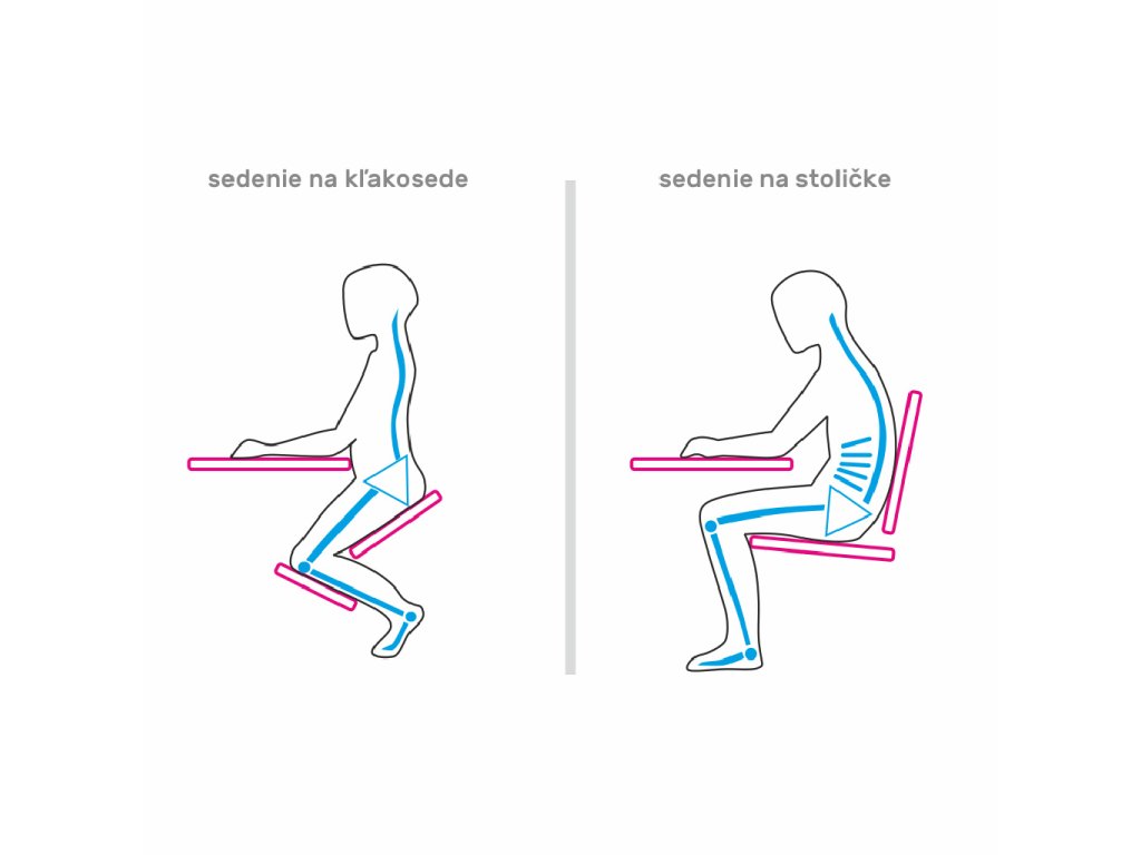 Správnym držaním tela sa znižuje napätie svalov a zabraňuje sa tak vzniku bolestí. Vďaka ergonomickej kľakačke prenesiete časť váhy tela na dolné končatiny, čím odľahčíte chrbticu. Sedenie na klakačke určite oceníte nielen pri práci, ale aj doma pri sledovaní televízie.