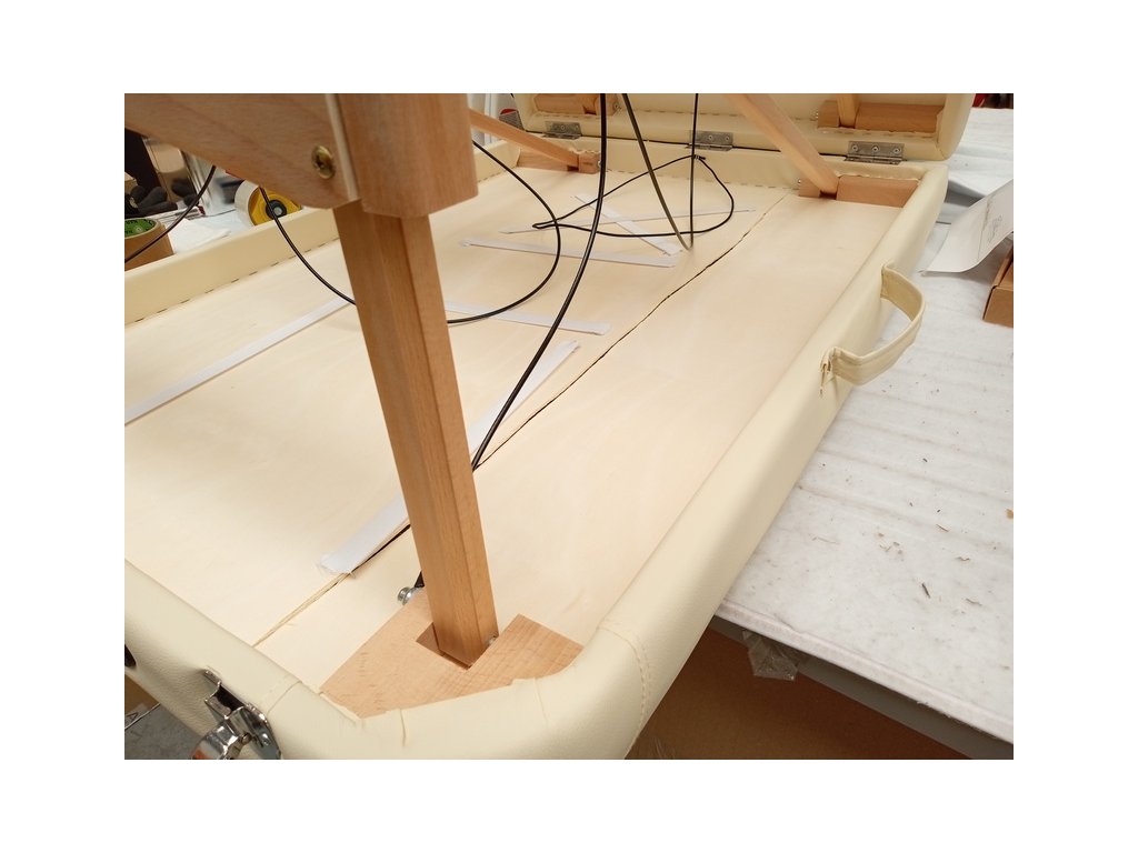 Skladací masážny stôl TANDEM Basic-2 v krémovej farbe má prasknutú preglejku. Pre používanie je nutná oprava! Poškodenie vidieť v galérii na priložených detailných fotografiách.