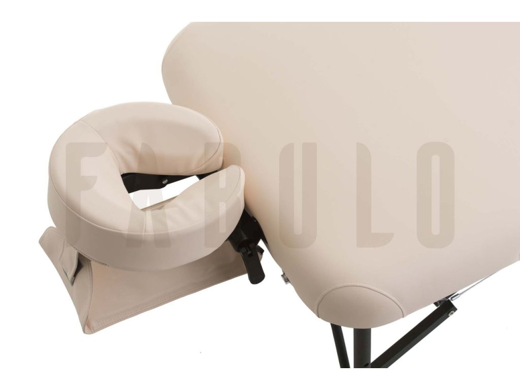 - Podhlavník Fabulo v tvare "U" sa využíva na pohodlné podopretie hlavy klienta, čím umožňuje dôkladnú masáž krku a šije. Jeho výška a sklon sa ľahko nastavuje pomocou rýchloupínaka.