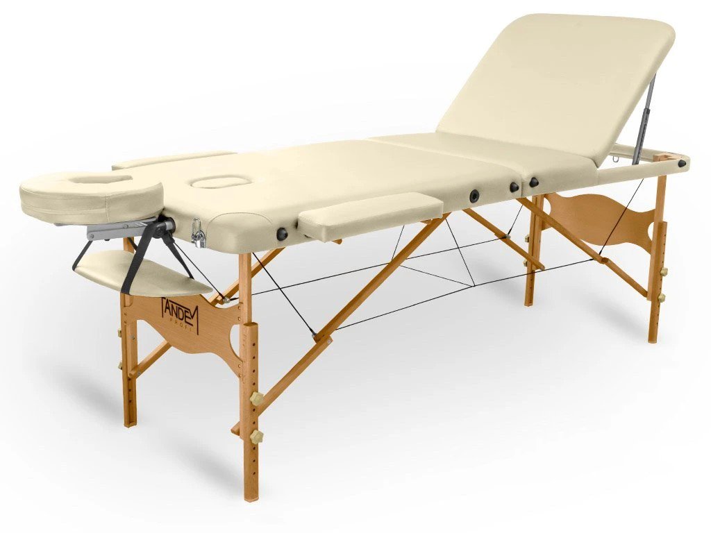 Skladací masážny stôl TANDEM Profi W3D je vyrobený z lisovaného, extra spevneného dreveného rámu s dvojitou hrúbkou a zdvíhacia tretia časť ho robí ideálnym aj pre masáž chodidiel.