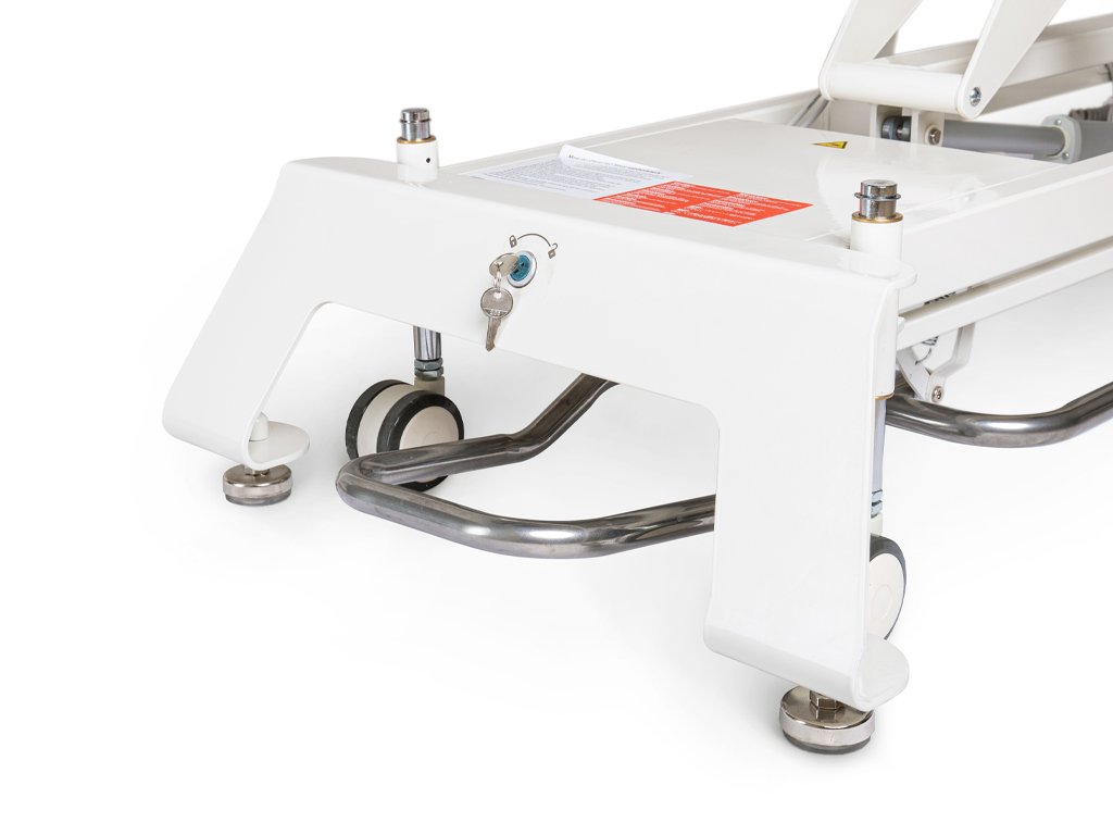 Lehátko je vybavené aj nastaviteľnými podrúčkami a otvorom na tvár so zátkou. Presúvanie lehátka uľahčujú kolieska, ktoré sa jednoducho vysúvajú a zasúvajú pomocou pedálovej páky.