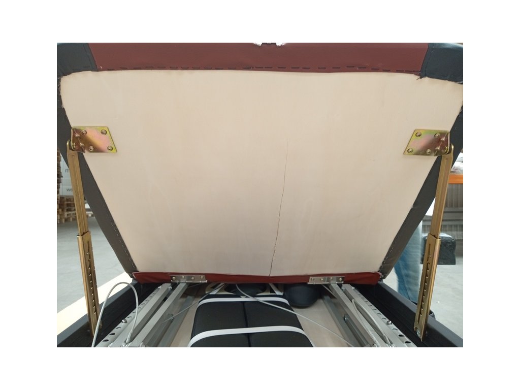 Skladací masážny stôl TANDEM Profi A3D Duo v bordovo-čiernej farbe má prasknutú preglejku na zdvíhacej časti. Pre používanie je nutná oprava!! Poškodenie vidieť v galérii na priložených detailných fotografiách.
